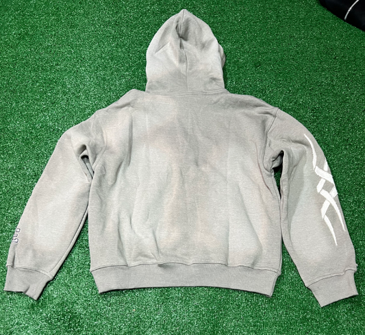 Timeless Gray zip up hoodie, 400 GSM, Distressed - Boxy Fit