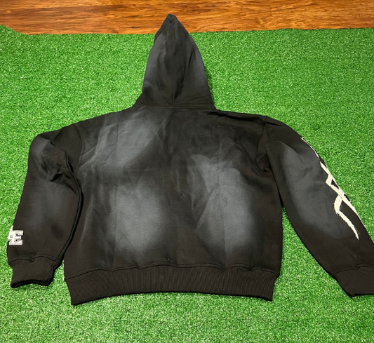 Regular price $69.99Regular priceUnit price / perSale price $69.99Timeless Black zip up hoodie, 400 GSM, Distressed - Boxy Fit