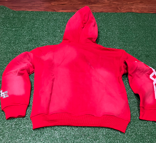 Timeless Red zip up hoodie, 400 GSM, Distressed - Boxy Fit